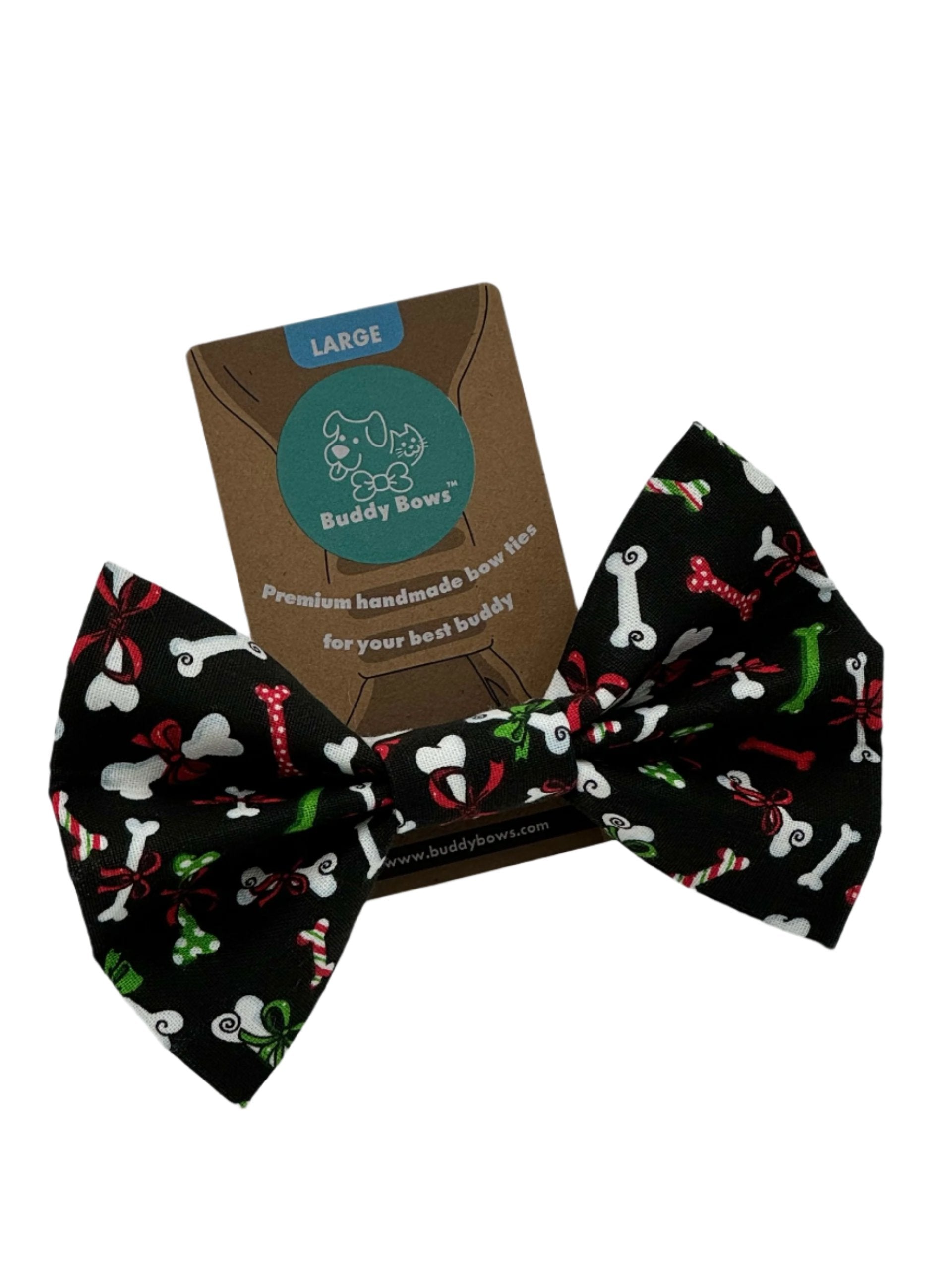 Make your fur baby the star of this holiday season with the Christmas themed bow tie from Buddy Bows™. Designed for style, comfort, and daily life, this adorable pet accessory works with your pet's existing collar and quickly adds a touch of charm to your dog's wardrobe.