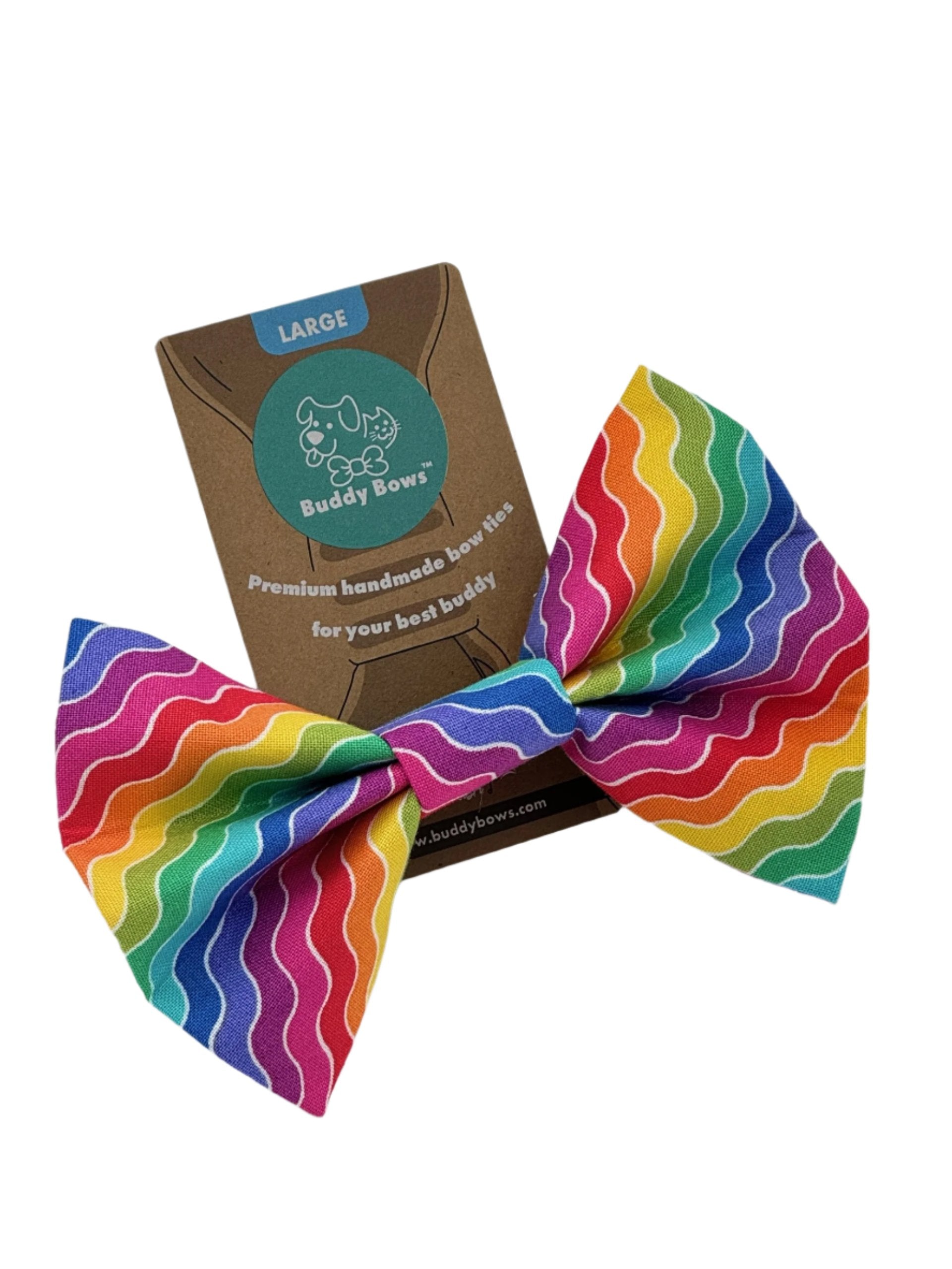 Make your fur baby the star of any occasion with the Pawride pride dog bow tie from Buddy Bows™. Designed for style, comfort, and daily life, this adorable pet accessory works with your pet's existing collar and quickly adds a touch of charm to your dog's wardrobe.