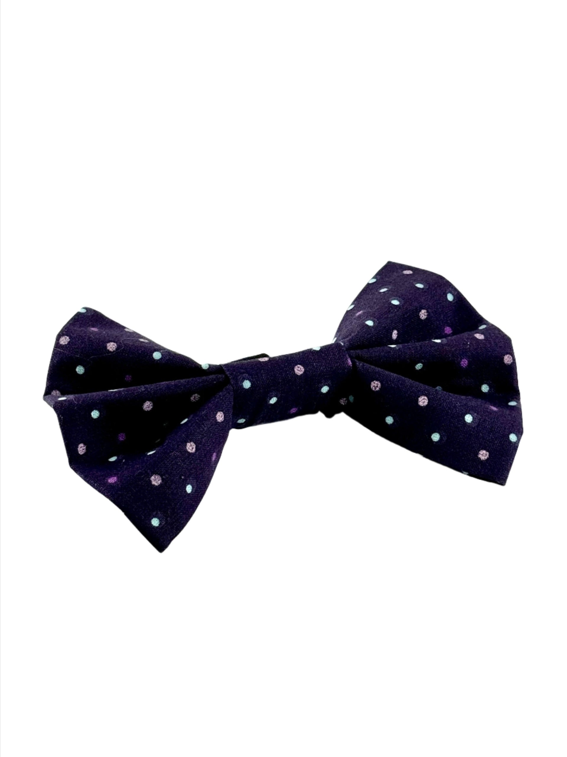 Make your fur baby the star of any occasion with the Purple Confetti bow tie from Buddy Bows™. Designed for style, comfort, and daily life, this adorable pet accessory works with your pet's existing collar and quickly adds a touch of charm to your dog's wardrobe.